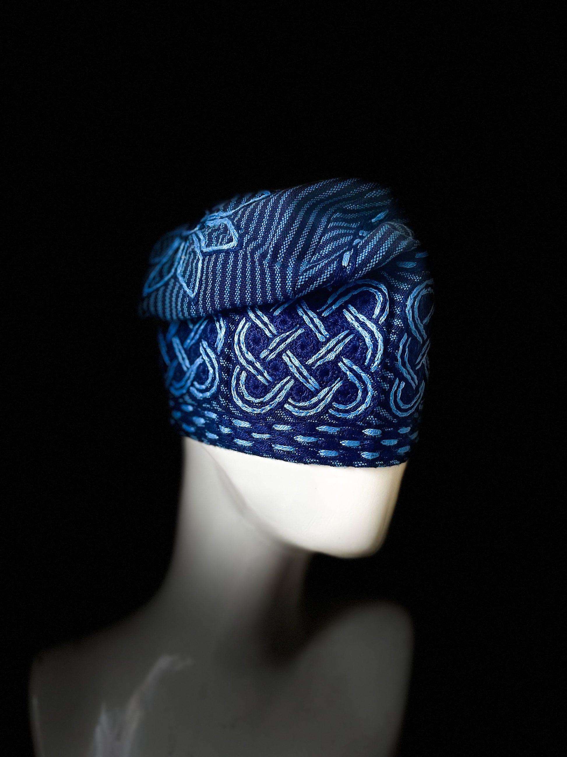 Blue and sky blue embroidery Aso Oke cap. It is worn for special occasions such as weddings, Birthdays, Engagement events. Hand knitted with quality cotton aso oke. A perfect cap for your kaftan, Agbada, Native mens wear and all types of African Mens suit.