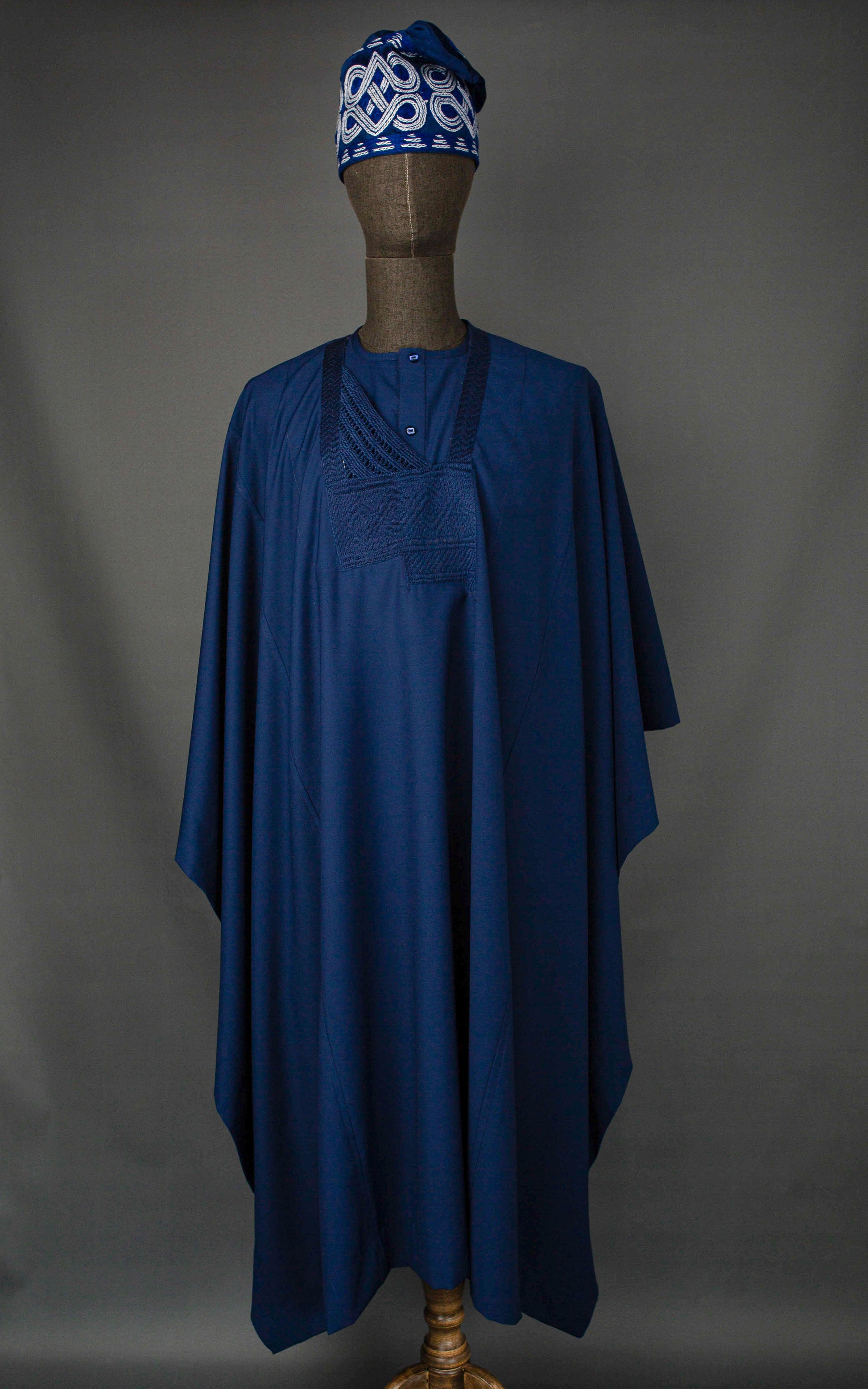 Navy Blue “Takwa Bay” Jakan Agbada – Ocean-Inspired 3-Piece Traditional Menswear