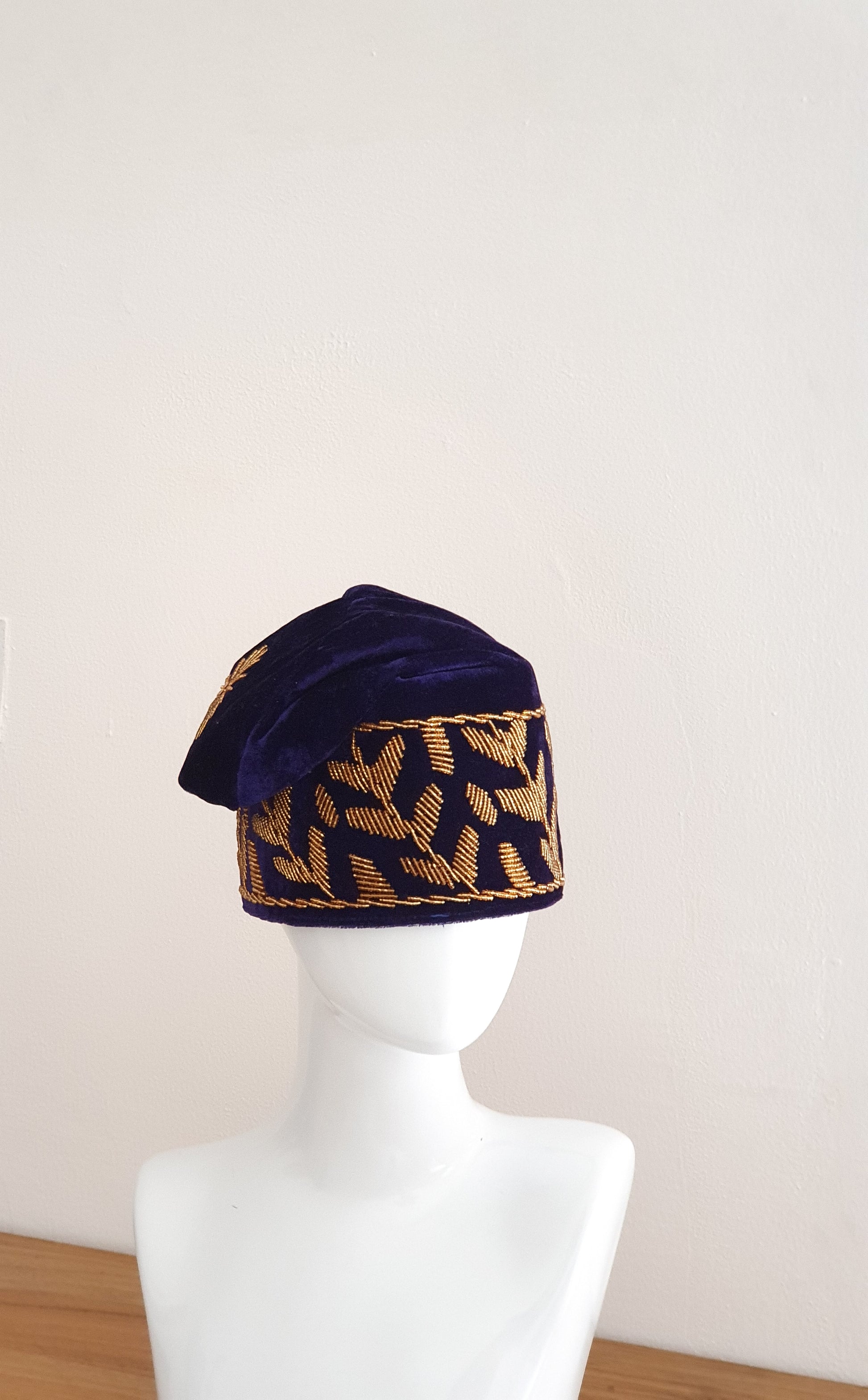 This handmade traditional yoruba fila is popularly known as Fila ide. Made with miyuki beads and velvet fabric It’s origin is from Southwestern part of Nigeria. It is worn for special occasions such as weddings, Birthdays, Engagement events. Hand knitted specially for kings.