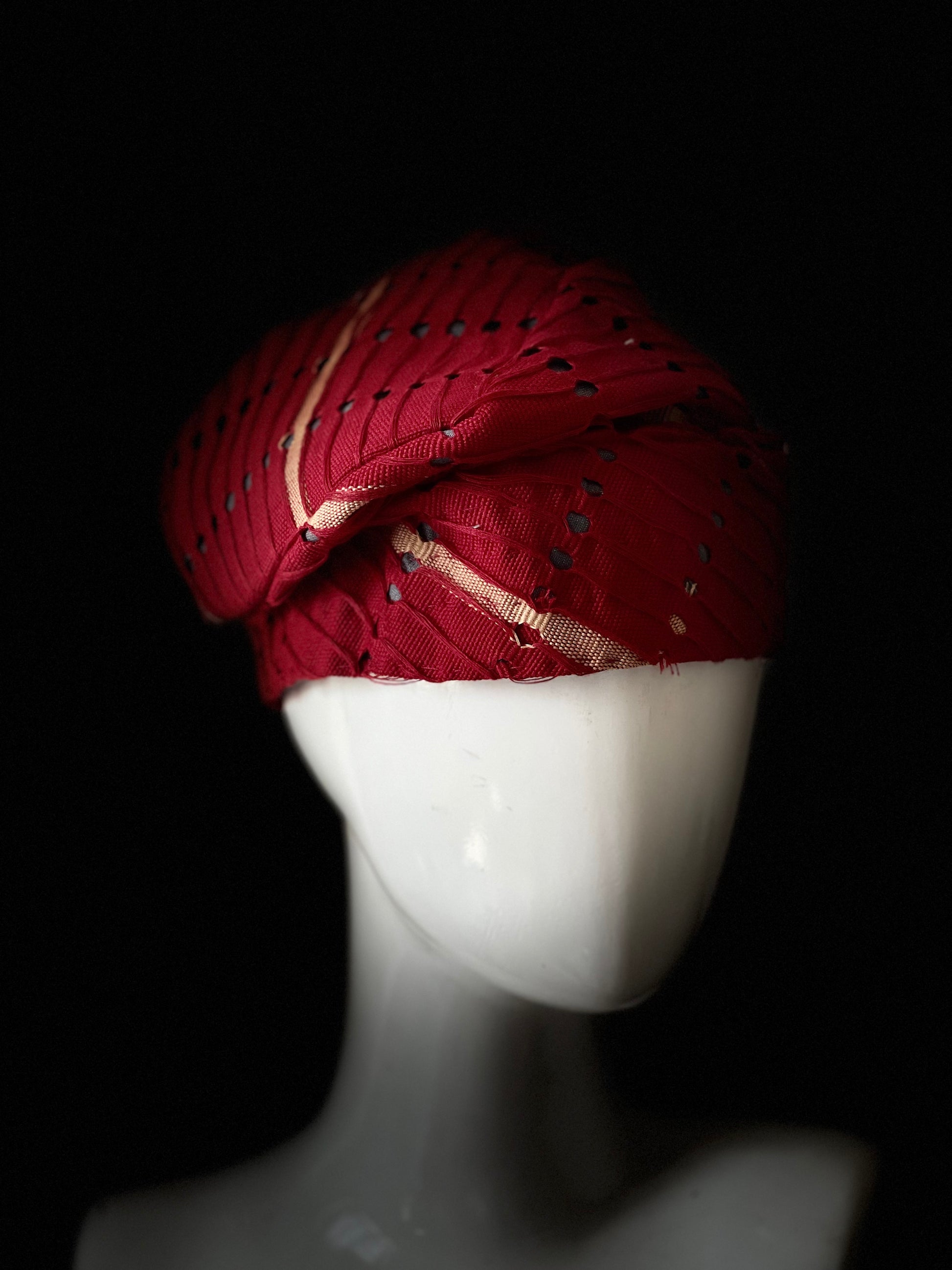 Red original cotton aso oke Nigerian traditional mens Yoruba cap made with 100% cotton for the ultimate sophistication. This cap is known as the fila ijebu and can be worn for special occasions pr casual events.