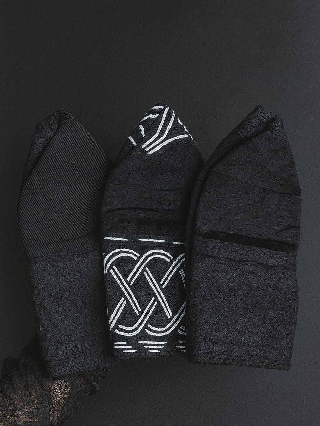 Bundle of 3 caps Black Aso Ofi, Black annd White Velvet and Monetime Black Velvet original cotton aso ofi Nigerian traditional mens Yoruba cap made with handknit techniques for the ultimate sophistication. This cap and can be worn for special occasions or casual events.