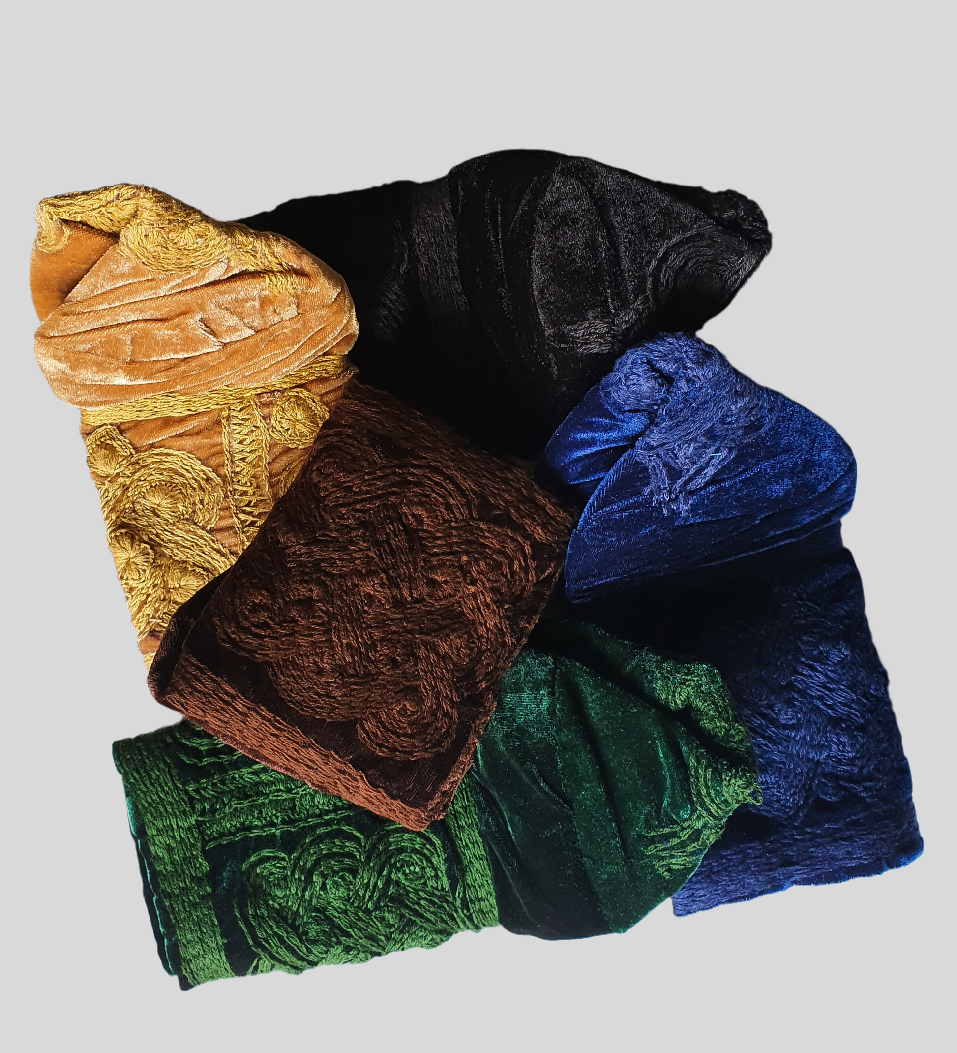 Embroidery velvet Yoruba cap. It is worn for special occasions such as weddings, Birthdays, Engagement events. Hand knitted with quality swiss velvet. A perfect cap for your kaftan, Agbada, Native mens wear and all types of African Mens suit.