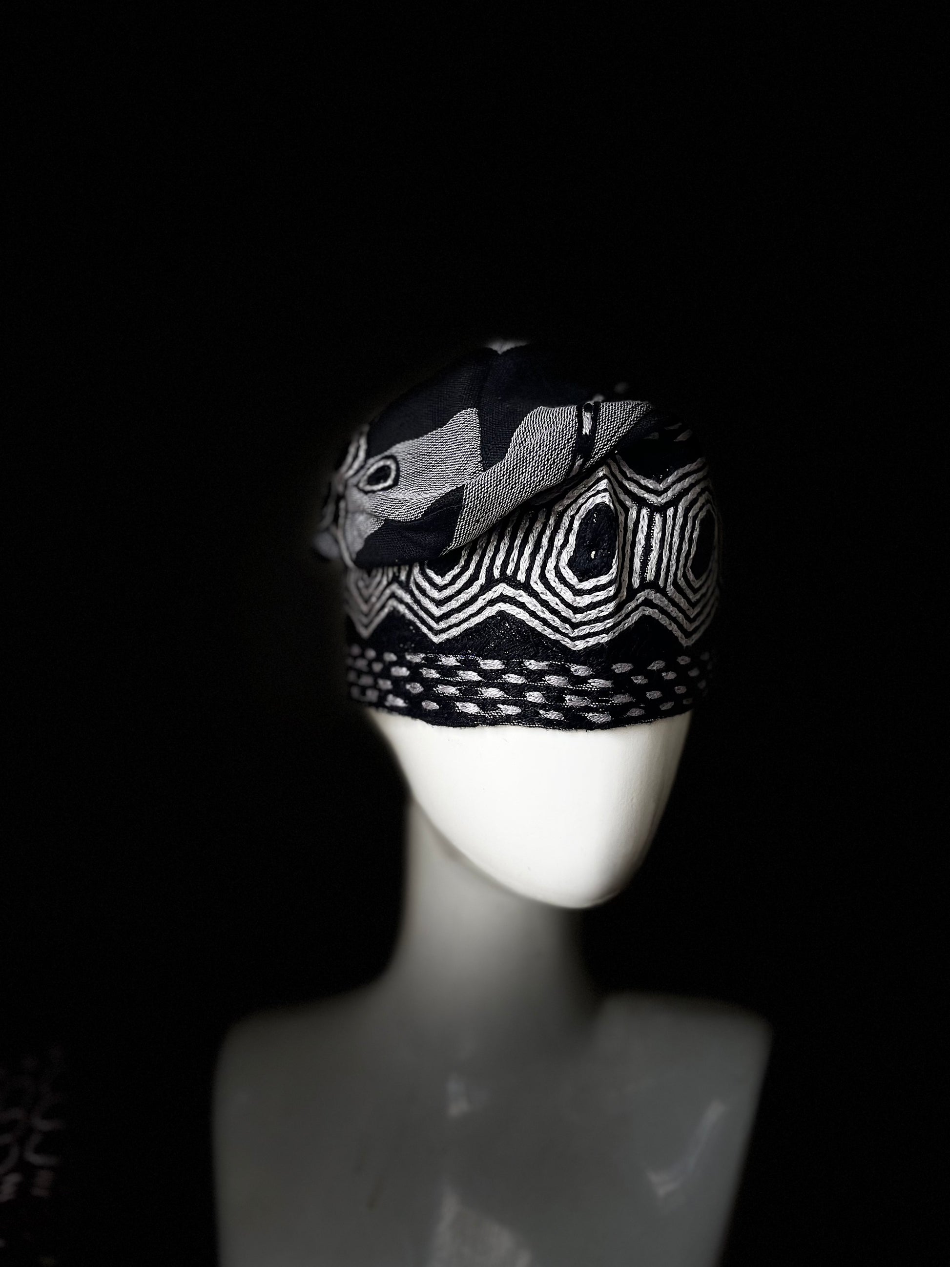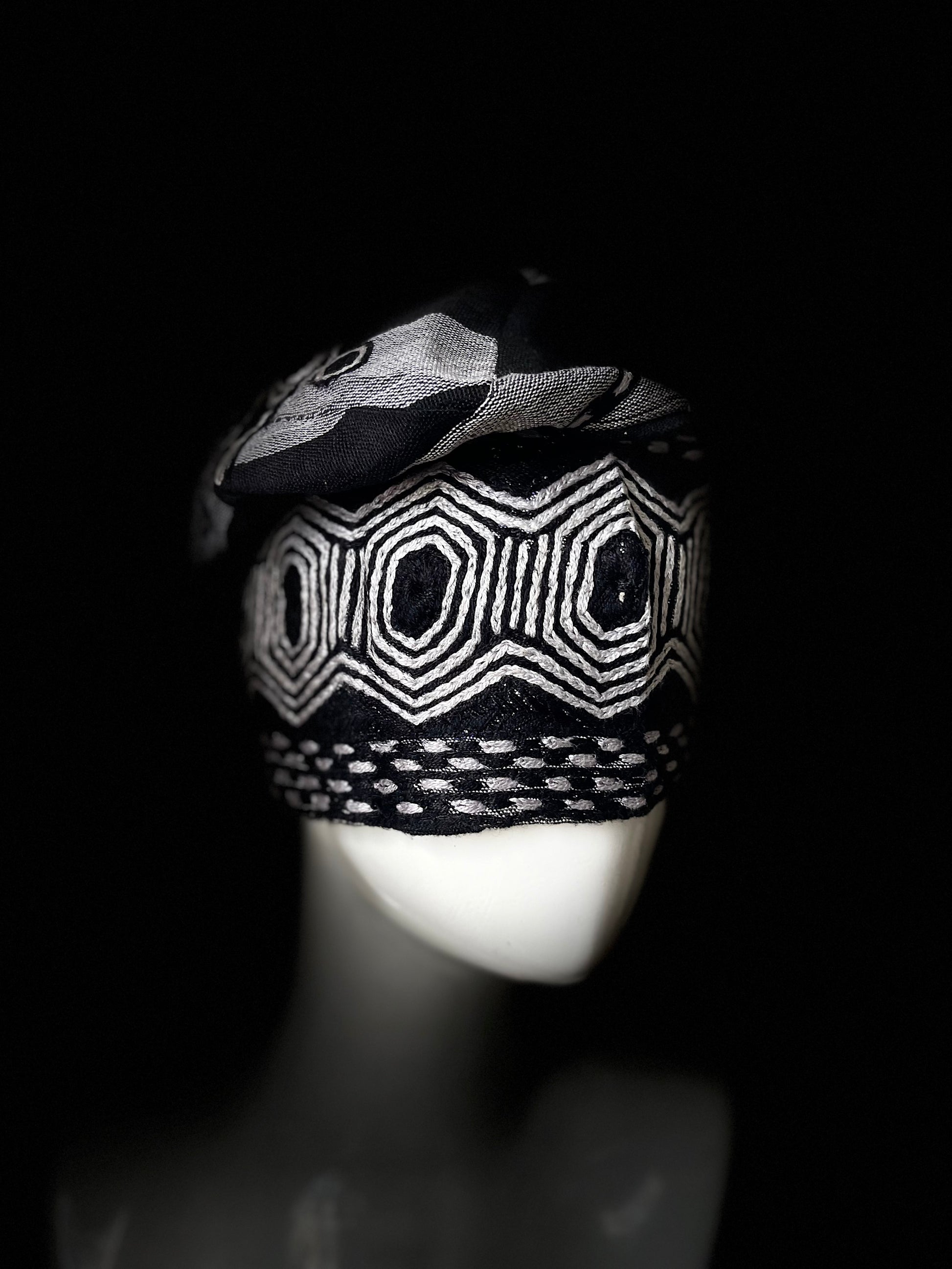 Black and ash embroidery Aso Oke cap. It is worn for special occasions such as weddings, Birthdays, Engagement events. Hand knitted with quality cotton aso oke. A perfect cap for your kaftan, Agbada, Native mens wear and all types of African Mens suit.